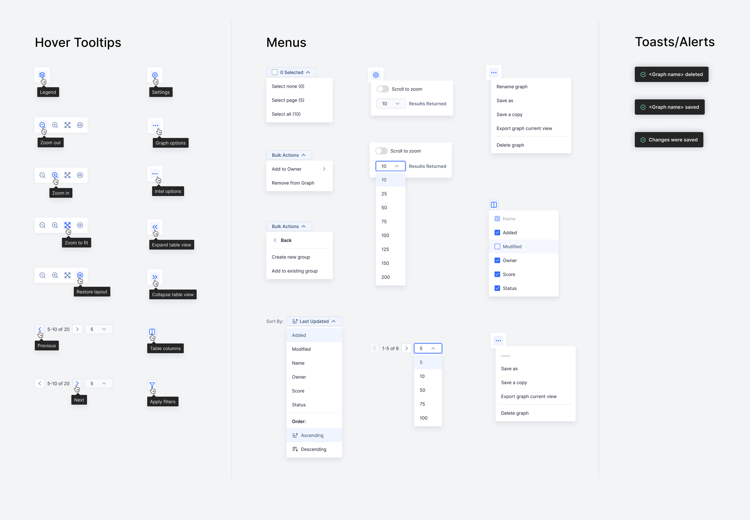Zoom and pan controls optimized for large datasets, with a zoom to fit and restore layout option if data becomes too spread out.